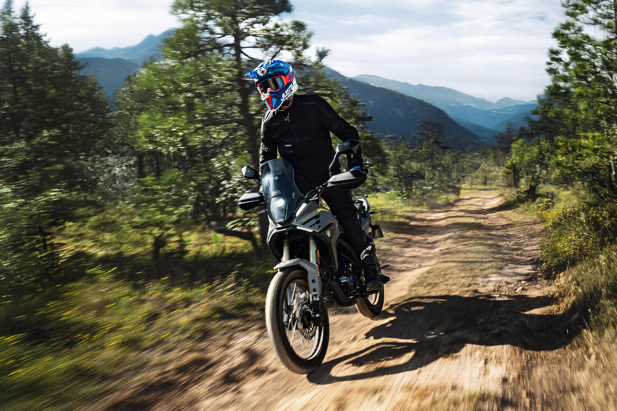 Lampu depan LED dan spatbor depan yang tinggi, sasis yang ringkas, suspensi yang terlihat, dan lengan ayun baja. Roda jari-jari 19”/17” dengan ban dual purpose memberikan traksi dan stabilitas yang konsisten. Setiap detailnya mencerminkan DNA trail.