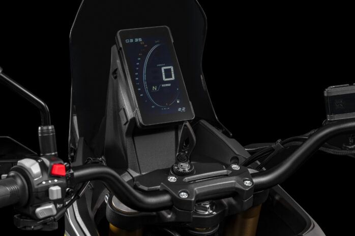 Layar digital yang jernih dengan indikator kecepatan, gigi, dan bahan bakar. Dilengkapi port USB terintegrasi untuk pengisian daya perangkat dan kontrol stang dengan lampu latar untuk visibilitas di malam hari.