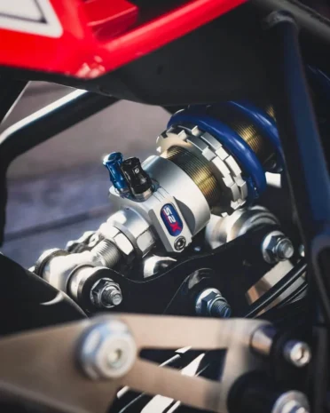 Suspensi belakangnya dari pabrikan Prancis, EMC, sementara sistem knalpot lengkap dari HP Corse Italia yang menghasilkan suara gemuruh Himalayan yang menurut Porta terdengar seperti “motor enduro sejati”.