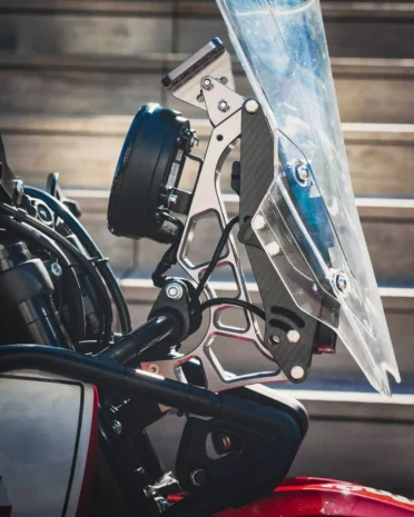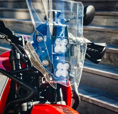 Pelindung garpu, pelindung tangan, dan bash plate dari Acerbis juga ditambahkan untuk memperkuat motor ini.